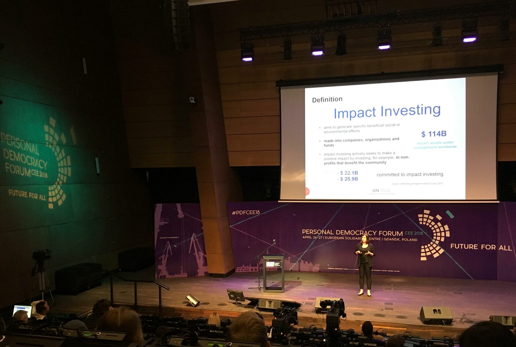 У цьому русі, наприклад, на професійних імпакт-інвестиційних конференціях вважається неприйнятним складати дискусійні панелі виключно з учасників чоловіків, так звані manels (від англійських слів men - чоловіки та panel - панель), оскільки було помічено, що це більш типово для традиційних інвестиційних конференцій.